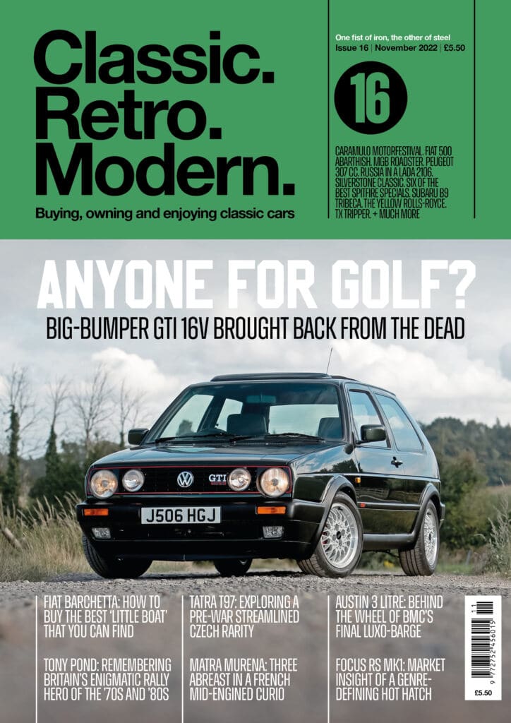Our cover car is the Mk2 Volkswagen Golf GTI 16v, widely acknowledged as one of the best hot hatches of the 1980s. We’ve also got not one, but three drive stories, which tell you what it’s like to be behind the wheel, while giving you a brief history lesson on what made the car great (or otherwise). The cars? Austin 3 Litre, Tatra T97 and Matra Murena. We told you it was an eclectic issue.